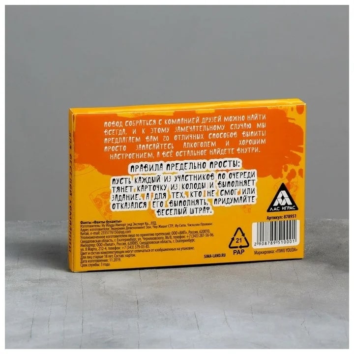 Купить игра для компании "фанты буханты" 20 карт от 100 руб. с доставкой до пункта выдачи в Гвардейске. Интернет магазин ДекаМаркет. Оплата при получении.