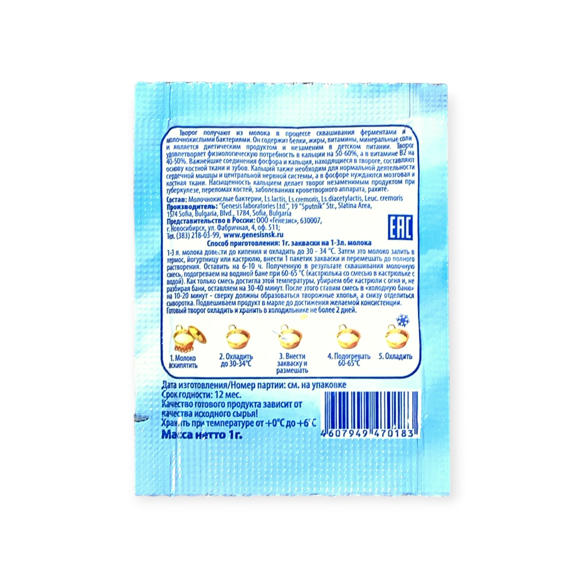 Закваска Творожок Genesis, 1 пакет от 100 руб. с доставкой. Пункт выдачи в Гвардейске. Интернет магазин по сыроделию. Всё всегда в наличии.
